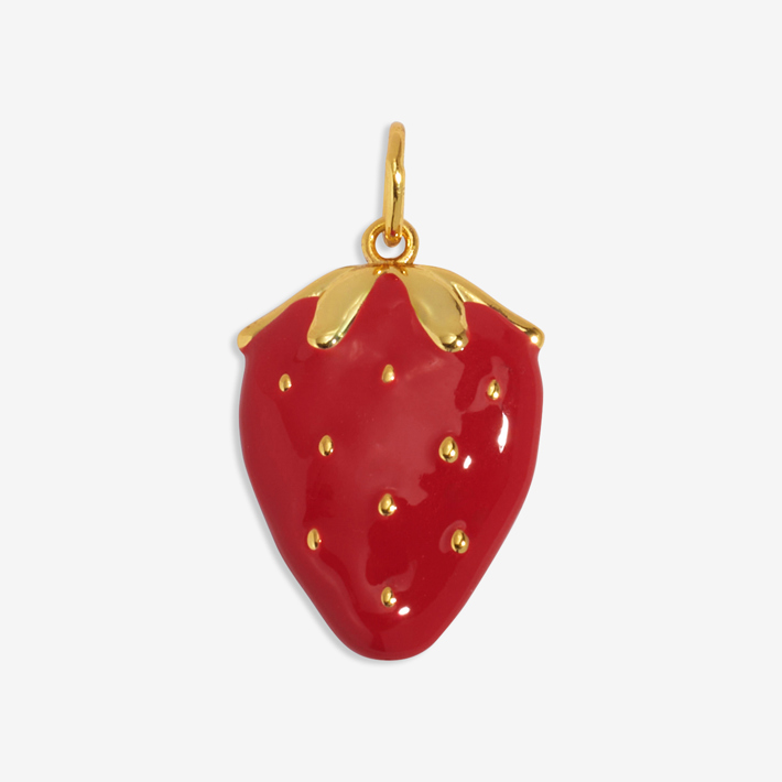 Add a playful pop to any look with this adorable strawberry charm! Vibrant, glossy red enamel paired with cheerful gold accents makes it a standout accessory that radiates personality. Whether you clip it on a bracelet or necklace, it’s an easy way to express your fun side or add a cute twist to everyday outfits. Lightweight and comfortable, it’s perfect for mixing, matching, and gifting. Show your unique style and bring a touch of sweetness wherever you go - this berry cool charm is sure to spark smiles and compliments!