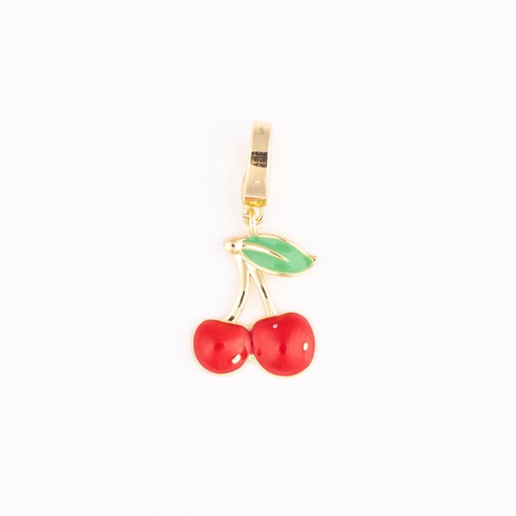 Add a pop of playful charm to any outfit with this delightful cherry pendant! Bright, glossy red cherries paired with a vibrant green leaf make this piece a cheerful accent that's perfect for expressing your fun side. Whether layered or worn solo, its lightweight design ensures all-day comfort and effortless style. Ideal for mixing and matching, it instantly brightens up casual looks or adds a quirky finish to dressier ensembles. Show off your unique taste and let your personality shine with this sweet, eye-catching accessory.