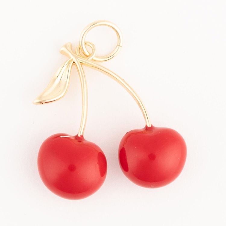 Description: Add a splash of playful charm to your collection with this delightful cherry pendant. Featuring vibrant red cherries and sleek gold-toned stems, this accessory effortlessly combines whimsy with elegance. It's perfect for expressing a fun, lively personality and brings a pop of color to any outfit, whether paired with casual jeans or a stylish dress. Lightweight and easy to wear, it's sure to become your go-to statement piece—inviting compliments and helping you stand out with confidence. Imagine the joy of wearing something so sweet every day!