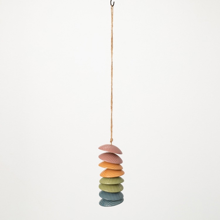 This beautiful ceramic wind chime adds a touch of color and charm to any indoor or outdoor space. The hand-painted stoneware clay disks create a modern and artisanal look, while the gentle swaying motion and soft tones create a relaxing ambiance. Hang it in your sunroom, covered patio, or garden to enjoy its subtle decorative accent. For a more pronounced sound, consider hanging multiple chime sets together for a layered effect.