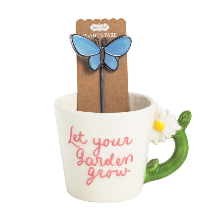 Add a whimsical charm to any space with this delightful ceramic mug planter featuring a vibrant butterfly plant stake. The cheerful design encourages you to 'Let your garden grow,' while the playful daisy handle and pastel colors instantly brighten up your home or workspace. Durable and practical, it's perfect for nurturing small plants, succulents, or simply uplifting a shelf or desk. A wonderful gift for garden lovers, this set inspires creativity, joy, and a touch of nature indoors—making every day a little more refreshing and bright.