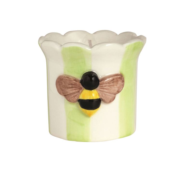Brighten up any space with this charming ceramic candle holder, featuring a cheerful 3D bumblebee and soft green stripes. Its whimsical design adds a playful touch to desktops, kitchens, or window sills, combining style and practicality. Sturdy and crafted to last, this piece acts as both decor and functionality—perfect for holding your favorite scented candle or organizing small essentials. Imagine a warm, inviting atmosphere every time you see its delightful bee motif. Spark joy with décor that’s as delightful as it is useful!