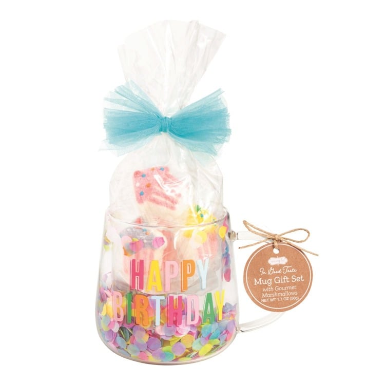 Celebrate in the sweetest way with this charming Happy Birthday Mug Gift Set! Bursting with color and fun, this glass mug is filled with festive confetti and comes with gourmet marshmallows shaped like party treats. It's the perfect blend of joyful presentation and delicious indulgence—ideal for gifting or treating yourself. Imagine starting someone’s birthday with a cheery mug that brings instant smiles and a touch of sweetness to their day. Unwrap happiness and make any birthday extra special with this delightful set!
