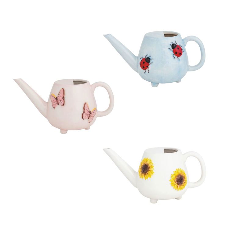 Description: Bring a dash of charm to your space with these whimsical ceramic watering cans, each featuring delightful nature-inspired designs—playful butterflies, cheerful sunflowers, or cute ladybugs. Beyond their adorable looks, these cans are crafted for everyday use, making watering plants a joy rather than a chore. Their sturdy ceramic build ensures lasting durability, while the comfy handle and precise spout help you water with ease and care. Perfect as a functional décor piece that instantly brightens any shelf, they spark smiles every time you reach for them.