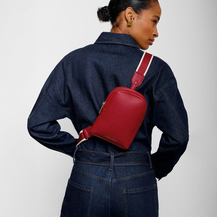 Description: Smooth pebble vegan leather with adjustable canvas strapVersatile design allows it to be worn as a sling bag or a backpack, depending on the occasion.A staple in your customers' everyday wardrobeRefresh your window displays by showcasing new season bagsShowcase in-store using our dedicated POS displays and branded graphics1-Year Guarantee