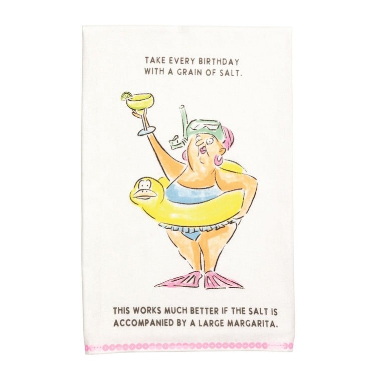Bring humor and cheer to any kitchen with this playful birthday-themed tea towel! Featuring a fun, colorful illustration and a witty saying, it’s perfect for anyone who believes life—and birthdays—are better with a touch of salt and a generous margarita. The soft, absorbent material handles everyday messes with ease, while the charming design brightens up countertops and parties alike. Add a splash of personality to your home or give the gift that gets everyone smiling—because celebrations should be as joyful as they are practical.