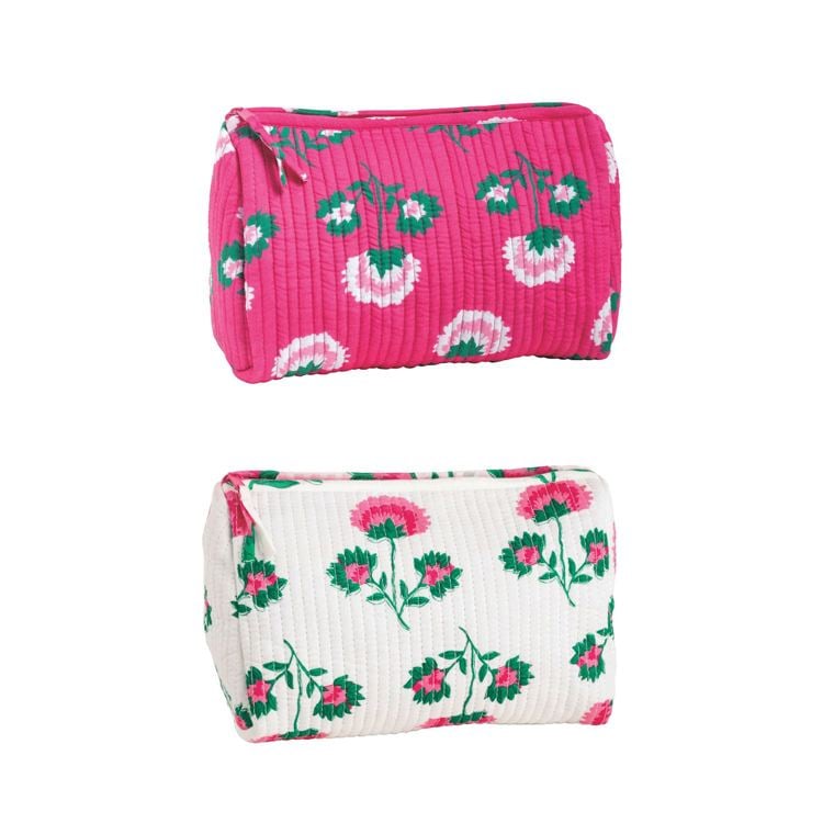 Brighten up your day-to-day routine with these charming quilted cosmetic bags! Featuring cheerful pink and white floral prints, these bags add a pop of personality while keeping your essentials neatly organized. Their soft, padded texture not only looks stylish but provides gentle protection for your favorite items. Perfect for travel or storing makeup on the go, these pouches combine practicality with eye-catching design—making every touch-up feel a little more special. Say hello to fun, functional storage that brings effortless style to your everyday.