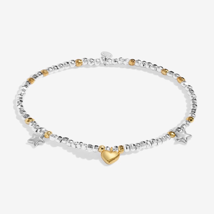 This stunning silver and gold-tone plated bracelet is the perfect gift for someone special in your life. Presented on a sentiment-stamped card with shining star-shaped paper confetti, it adds a touch of sparkle to any occasion. With one sold every 30 seconds worldwide, this bracelet is sure to be a hit with your loved ones. It pairs perfectly with other A Little bracelets, creating a beautiful display of shimmer and shine. Plus, with a 1-year guarantee and free recyclable gift bag included, you can feel confident in your purchase. Make your gifts stand out with this dazzling bracelet that is sure to be treasured for years to come.