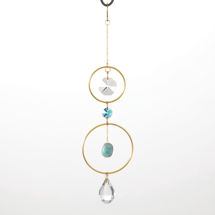 Add a touch of modern elegance to any space with this beautifully crafted hanging ornament. Featuring shimmering crystals, vibrant blue accents, and gleaming gold circles, it effortlessly catches and reflects light for a dazzling display. Perfect for brightening up windows, workspaces, or entryways, it brings a sense of calm and style wherever it hangs. Durable and eye-catching, this piece is an easy way to enhance your décor and create a welcoming, uplifting atmosphere your clients and guests will love.